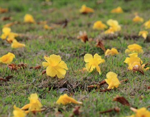 哈哈来珠江公园闲逛了半天从北门出来,偶遇了美丽的风铃花,这片黄黄得太漂亮了,天空也显得特别蓝~~~
