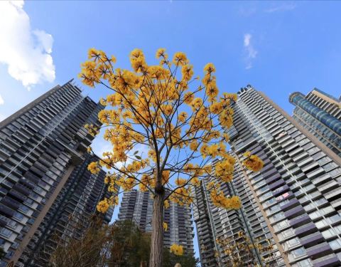 哈哈来珠江公园闲逛了半天从北门出来,偶遇了美丽的风铃花,这片黄黄得太漂亮了,天空也显得特别蓝~~~"因过竹院逢僧话,偷得浮生半日闲"。哈哈来珠江公园闲逛了半天从北门出来,偶遇了美丽的风铃花,这片黄黄得太漂亮了,天空也显得特别蓝~~~