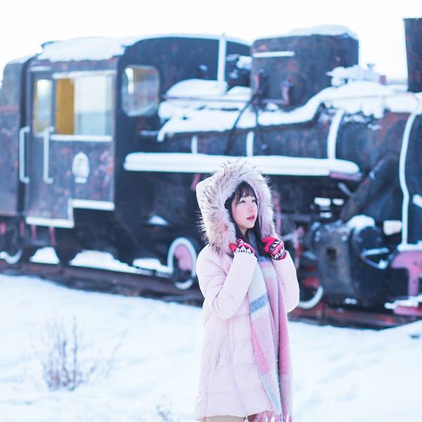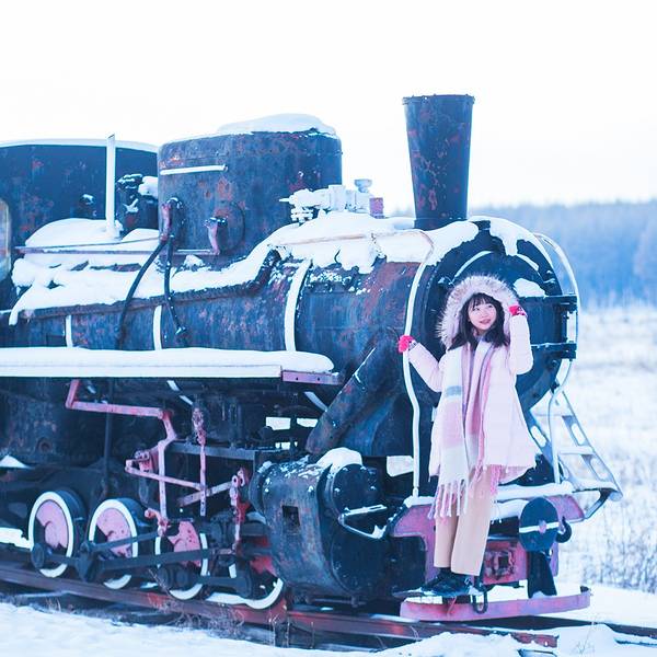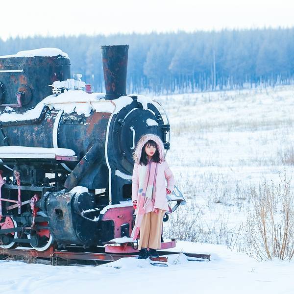 好在和小伙伴默契十足,这样的极端环境也没难倒我们,这次旅行大概是我们出片最快的一次了。往前走一点,看见一个废弃的火车头,跑去拍了几张照片,鼻子被冻的通红。出发前忘记带手套了。这个鲜艳的手套是昨晚在吃夜宵旁边的超市花了5块钱买的。
