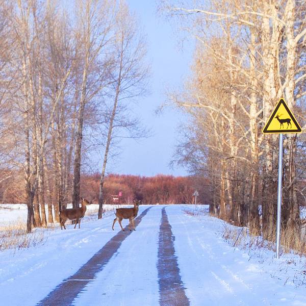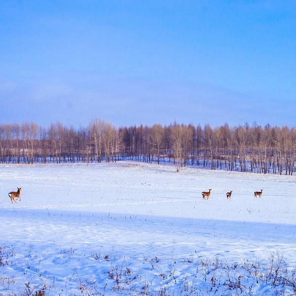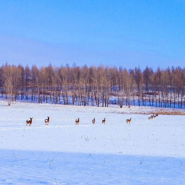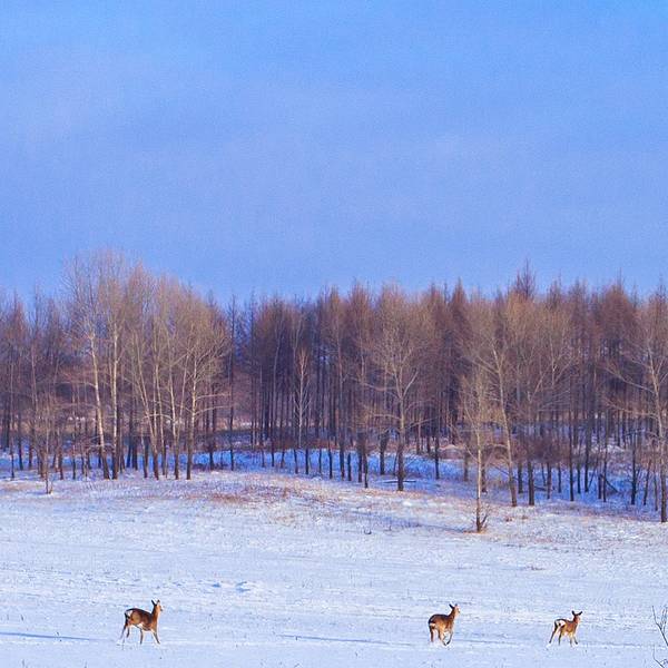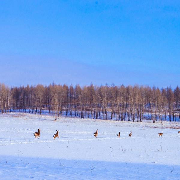 被猎人追赶了会把头埋到雪里,以为这样就不会被发现了,人们常常叫它“傻狍子”因为没有长焦,所以我想跑近点去看看。结果两只狍子也盯着我看,我们对视了十几秒,那感觉真奇妙。当我想再往前走的时候,其中一只发出叫声,然后所有的狍子都开跑。