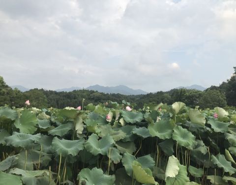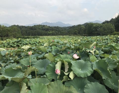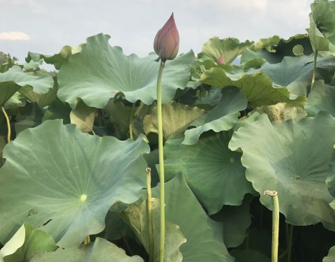 门前一片荷花塘 挺美的。一个莲藕两元钱