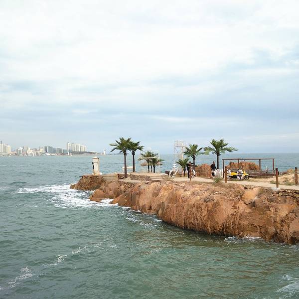 第三海水浴场位于湛山附近,公交车的话可以在“第三海水浴场”站下车,但是这边的公交比较少,可以选择到“二疗”或者“湛山”站下车,一直往海边走,经过10分钟左右的路程就到了。第三海水浴场的美丽在于,在这里能看到很震撼的高楼大厦和很美丽的海景,而且最重要的是这里游客真的不多,随随便便拍照取景不用p图。一边是现代化的高楼大厦,一边是太平角美丽的小山坡绵延到海里,在这里拍婚纱照绝对是绝佳位置了,所以这边有一个大型的婚纱公司,有固定的外景点还有直升飞机可以拍空中婚礼,简直酷毙了。第三海水浴场的沙滩质量很好,绵软不扎脚,很舒服。周边有很多有特色的小咖啡店,每家小店都装修得很有自己的风格,如果逛累了可以选择在这边点一杯咖啡,静静地享受一个午后,同时,也是拍照的好地方。我们去的那天天气非常好,景色风云变幻,特别美丽。这里是婚纱摄影机构的外景基地,北国的青岛,种了几颗椰子树,平添了几许南国的风情。奥帆中心是青岛现代化的象征,从这里看奥帆中心,这些大厦就像是拔地而起。总体来说,这是一个很适合拍照的海水浴场,建议把拍海景照的行程放到这边,穿上美美的飘逸的衣服,选一个晴朗的或者有晚霞的天气,会有意想不到的惊喜。