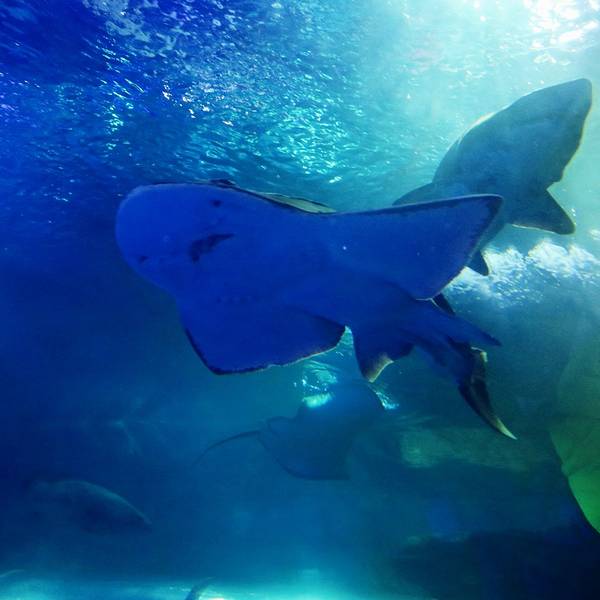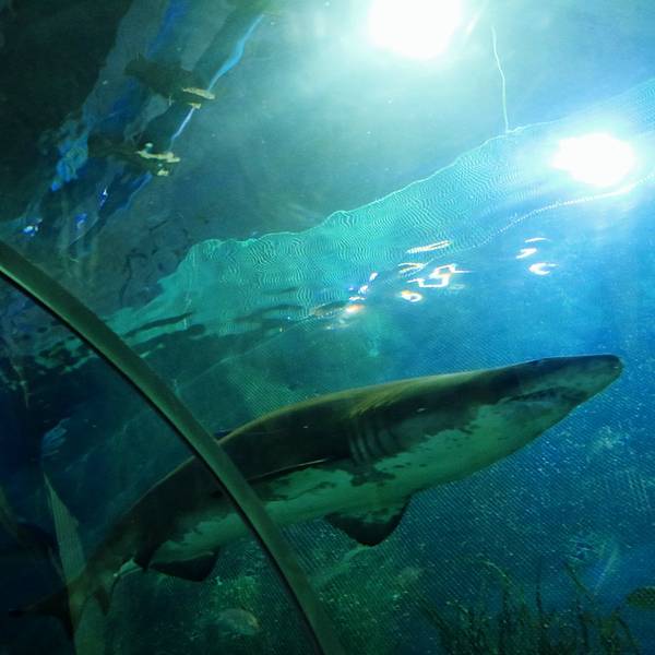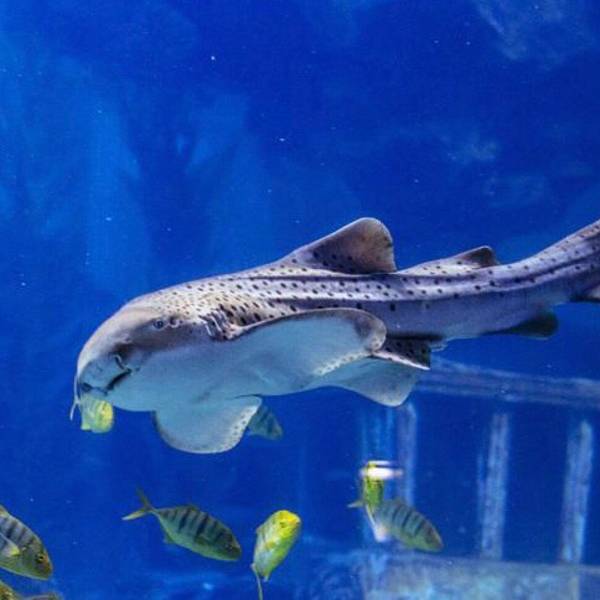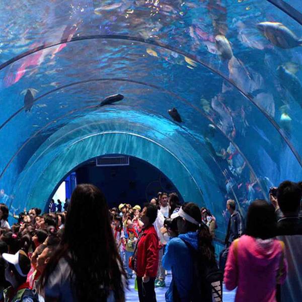 参观海洋生物标本、漫步海底隧道,欣赏“人鲨共舞”等表演。