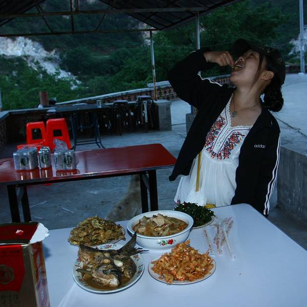 第二天一早,由于之前一天的暴走爬山,整个队伍里除了我这个年龄最小的和另外一个没到山顶的叔叔外,全部表示不能再爬了,膝盖受不了了,于是乎,打开地图,随便点了个没听说过又听起来不用爬山的地方。出发!但这注定是折腾的一天,有些烦人,却是纪念这次自驾游行程不可或缺的一环~~同行的另一辆车,车带意外被刮坏~~找遍全县都找不到那顶配车辆所需的车带,最后只好卸下车轮,老爸开车跑去保定市的4s店换带~~~然后再拉回新的自组~~说来简单,这一天 的时间全部用在了这上面,有所失是耽误了大好的游玩时间,而所得是,哇哈哈哈,我学会了换车轮,如何用千斤顶,如何拆轮,如何装上……还不难嘛,就是估计 力气可能不够,但是理论知识一定没问题了,也算不小的收获啦~ 修好了车,一队人再次产生分歧,回天津or继续,答案自然是继续,就这么回去了岂不白浪费时间了。很顺利的到达了随便选的那个满城叫做龙潭湖的地方,30米的门票,进去后开了一圈没发现任何很吸引人的景致,只是一个湖在那里,被山环绕。于是再次分歧。几个人坚持回天津不住了,其他人也不好意思反驳,心里郁闷 的说,拉着老爸嘀咕,我喜欢这里,住一晚看星星都是好的,而且也不想让老爸开夜车回去,他们非要回,我们留下吧……经过老爸一番沟通,结果竟然是全体留下 了~~再次佩服老爸,也不得不说,有主意但凡事犹豫纠结的秤子加上会耐心听意见却雷厉风行的白羊真的很搭啊~~就这样,我们住在了这个叫做龙潭湖的地方,以至于后来,我们回来时一直感慨还好没有错过它的美好! 看上去没有路的龙潭湖,其实往里面走便是当地旅游局将要重点推出的峡谷景区,只不过正 在修路,所以完全挡上了,又是峡谷,所以开始车绕景区时根本看不到的。后来听了当地农家的指引一路绕过茅屋,跨过小溪,向着发出隆隆机器声的地方行走,不久便来到正在修建的峡谷入口,向里迈进,几分钟之后便听不到机器的轰鸣了,映入眼前的是没有开发的天然峡谷,耳边围绕着不同的鸟鸣~~自然形成的白色河床 石滩衬着随意生长的各种绿植,偶尔消失不见又忽然冒出的小溪水流~~没有任何人工布道,完全自己研究如何前行的天然野趣让我惊喜不已……可以低头在石滩中 寻觅美丽的小石子,可以把小溪“截流”自造一个“小湖泊”,可以沿着山上人家踩出的小路试着上山,还可以藏在草丛中快行绕到同伴身后吓人……一路前行需要在水面宽阔的地方自己搬来石头一步一搭前行的路,也会被清晨的露水打湿鞋面……那感觉实在妙不可言,哈哈哈,天地之间尽归己有的感觉啊~~ 出来的时候遇到了正在研究开发方案的当地旅游局工作人员,出门喜欢和当地人乱哈拉的我又找到了聊天对象~~~结果对方不停的说对不起,因为还没修好,所以好多地方可能不那么 适合游玩之类,但我却在不停和他讲,务必让他做开发方案的时候注意,不要一味学其他同类峡谷地区的开发方法,那样,千篇一律的风景架构,又没有人家的著 名,实在不是妙招~~其实只要加个人行步道就好,下面依旧保持没开发的石滩原样,水多时可以走高架步道欣赏峡谷风景,旱季大家可以在石滩上寻找野趣,实在是比建坝蓄水只能坐船游览,在个别地方可以下船爬山这样的模式来的好玩的多了,而且还省去了拉石出谷的大笔费用……哈哈,我个话痨真真和对方提了不少的建 议呢,也不知人家能听进去多少~~哈哈~有机会再去看看吧 晚餐,农家饭,不便宜,5个菜加上任吃的饭200米多,不过住宿50一间房,没有独卫,洗漱和厕所都在屋子外面,厕所是旱厕,纯农家~~~ 住在龙潭湖的夜晚,看星星看的过瘾,好多年没有这么认认真真的看过星星了,没有路灯的小山村,漆黑的晚上,伸手不见五 指,头顶上却是真真的星光灿烂,更有幸的是同行的一位叔叔是曾经是天文爱好者,真真是过足了眼福还长了好多知识!!期间除了多认识了好几个星座外,还看到 了2颗流星和一颗卫星,哈哈,好玩!写着写着不禁就想起了那片天空了呢,唉~污染的城市空气~实在是太向往儿时的蓝天白云和漫天星斗了…… 我是吃货~~~所以,偷吃被拍很习惯,你拍你的,我吃我的,哈哈哈~~~最好我吃光你还光顾着拍~~