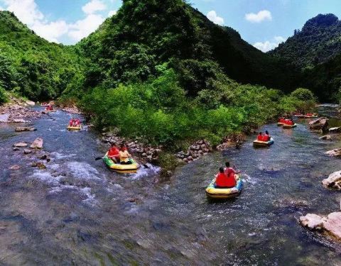 自驾过去停车费5元,门票120元还不包含漂流下去回来的返程中巴车,返程中巴车10元一个人、身高1.2米以上小孩竟然全票,漂流需要1个半小时,一艘橡皮艇坐12个人,暴晒及坐的屁股疼,纯粹招罪,根本就没有一点漂流的感觉,一个船工在船尾划桨,低速航行,最让人生气的是上岸后等了半个小时返程中巴,就在太阳下暴晒,上车也没有人验票,早知道根本就不用买返程车票,以后不会再去了