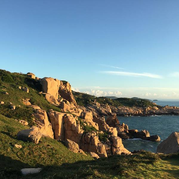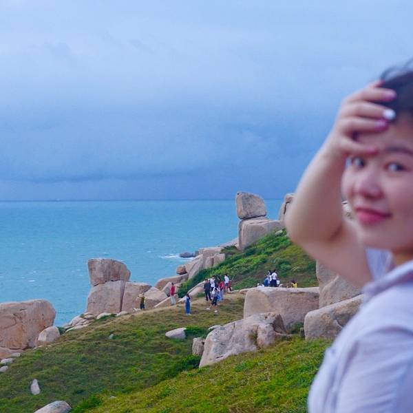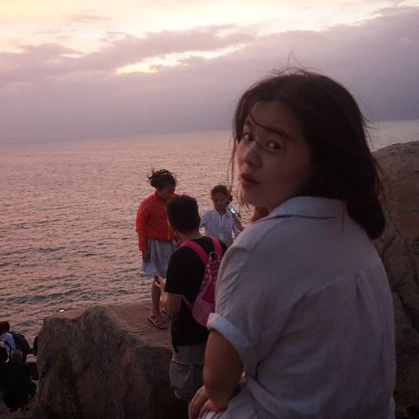 然而第一次去的我们并没有找到最佳观日出点,换来换去很多地方,人开始越来越多起来,尽管天都还没亮。。最后我们在一个角落里和各式人挤着从缝隙中拍照。。披星戴月来逐日啊~~可是昨天是阴天。。怪我们没提前看天气预报吧。。以下极尽的诠释了一脸懵逼。。后来人都走了,我和男票坐在那里默哀。。有几个女生看到了,觉得我们背影特别好,强行帮我们拍了张然后突然太阳露了个小脸就又回去了。。不过这个岛不管什么天气都真的是超!级!美!不管什么姿势也是超!级!美!随便找个路人帮我们拍合照都是爆好看的,感觉要是穿婚纱来都不用带摄影师了哈哈哈最后我们绕着整个三盘尾一直走啊走啊走到了尽头又绕着海的边上走回了入口。。真心要把LZ走趴下了。。整个游玩下来就大概七点多了吧,走得慢的也八点多能走完,所以其实完全能赶上第二天早上回瑞安或者鳌江的船的哦。没有必要一定要买中午或者下午的船,我和男票就犯了这个错,以为我俩能玩很久,谁知我走得脚痛,风把帽子吹不见后吹得头痛,只想要返程。是的我就是这么羸弱的一个小女生嘤嘤嘤(呕)