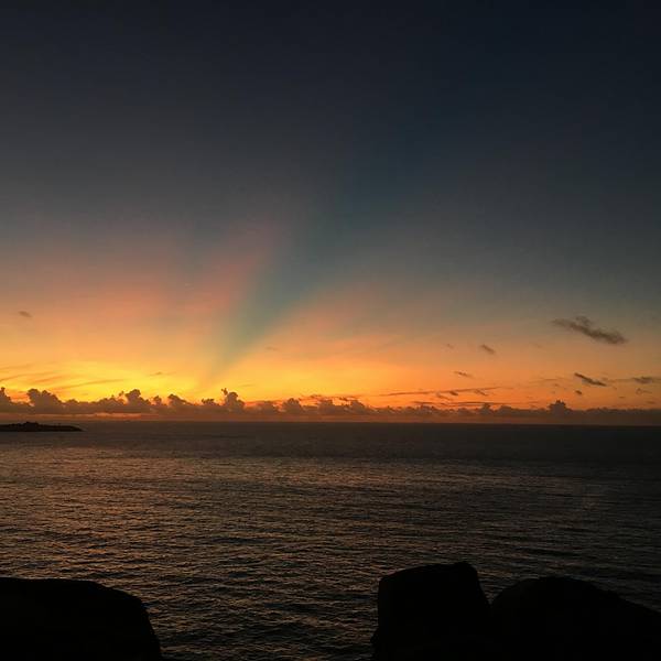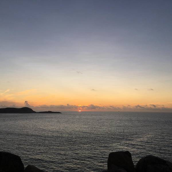 盘山公路弯弯绕绕,可算来到了日出地点刚抵达的天边看日出需要很多耐心它来啦来啦虽然有云层挡住了。不过也很幸运咯。敲大蛋黄呀,哈哈哈看完日出可以环岛走一圈。栈道...凌晨四点天依旧很黑,公车里谁也看不清谁。