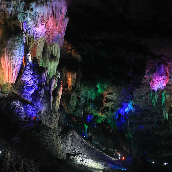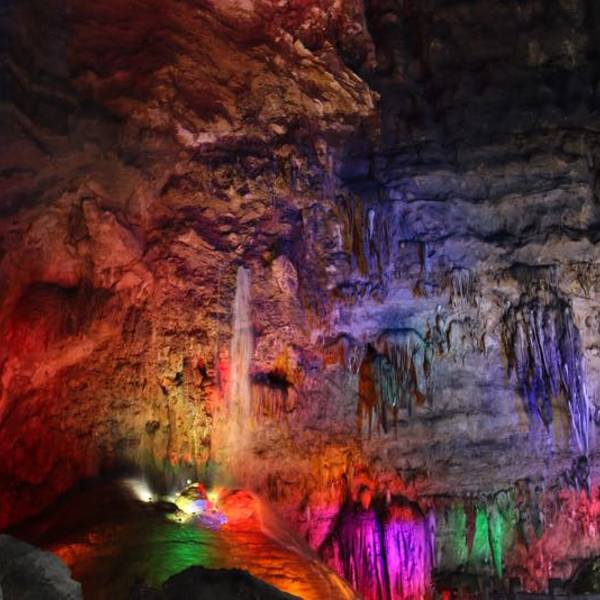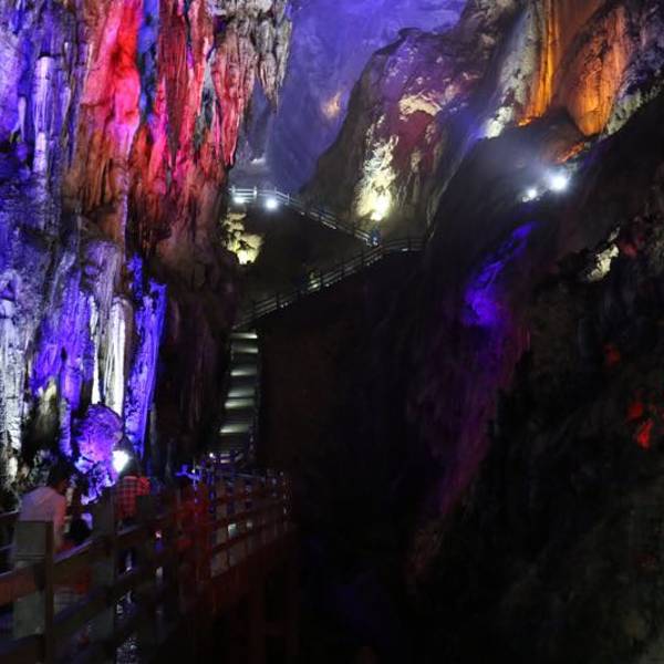 里面有宽敞的大厅、曲折的廊道,险峻的峡谷,幽深的地下河,还有五彩缤纷的钟乳石。