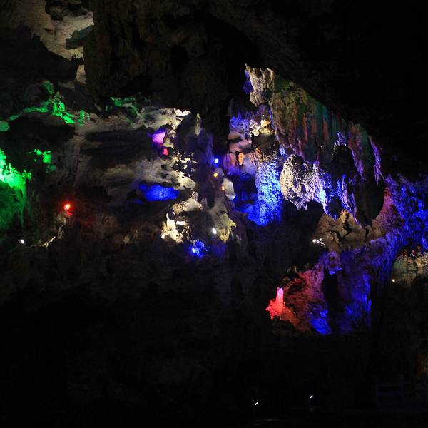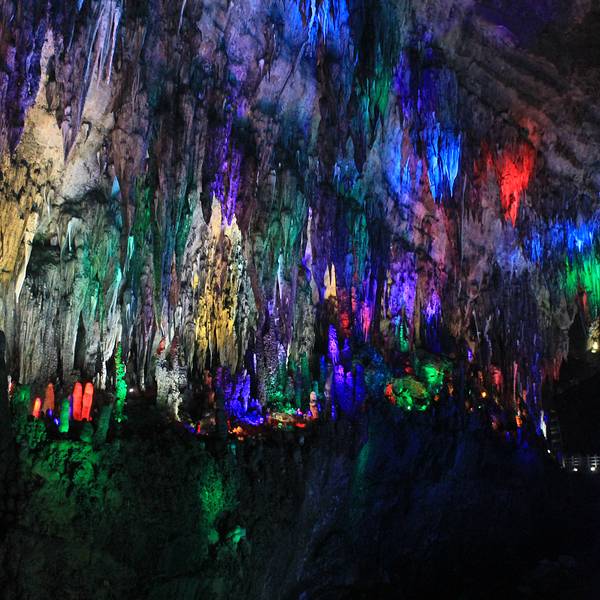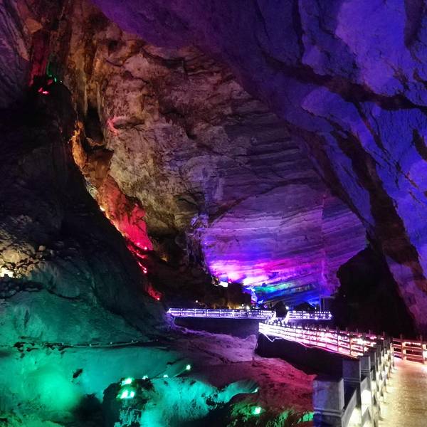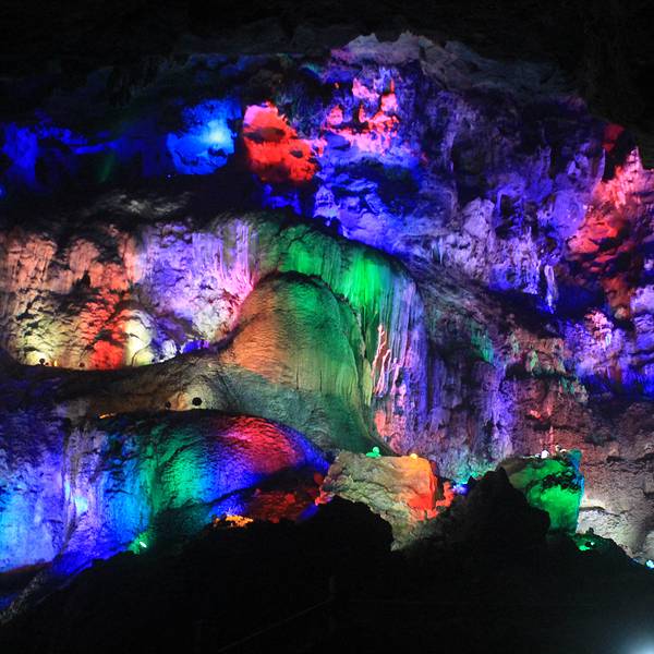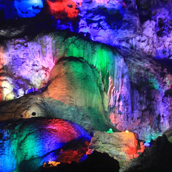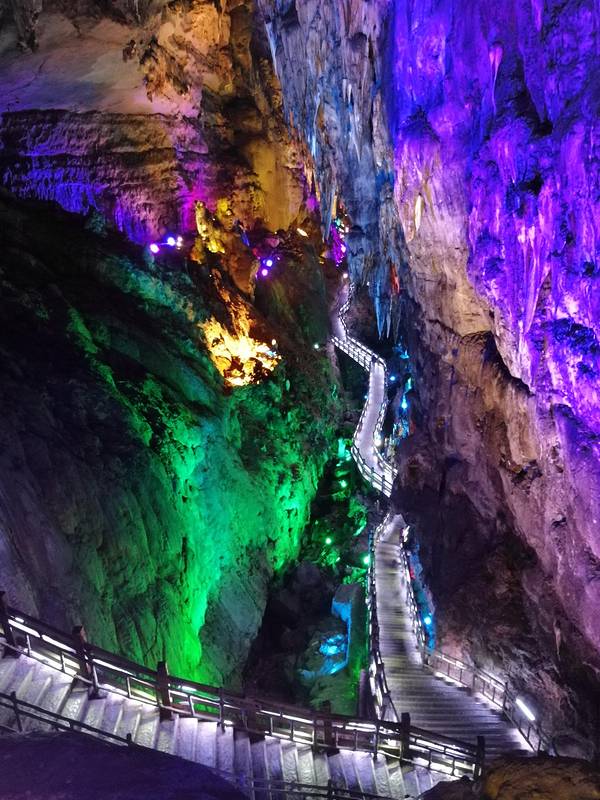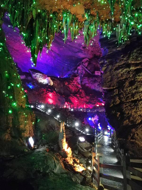 ☀洞内灯光布景、颜色搭配太专业,不仅没有夺去它的光彩,反而更加衬托出了雄伟之气。