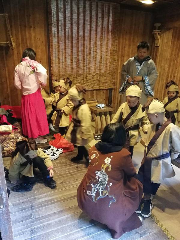 景区的工作人员都穿着秦服,甚至游客也可穿着古装悠荡在景区,给人一种回到了古代的感觉。