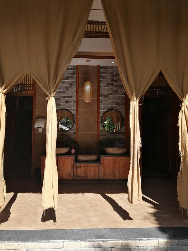 还有卫生间,哎呀,装修风格很有古韵,包括所有的装饰和设施。