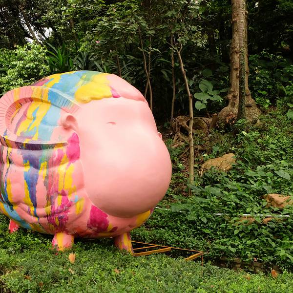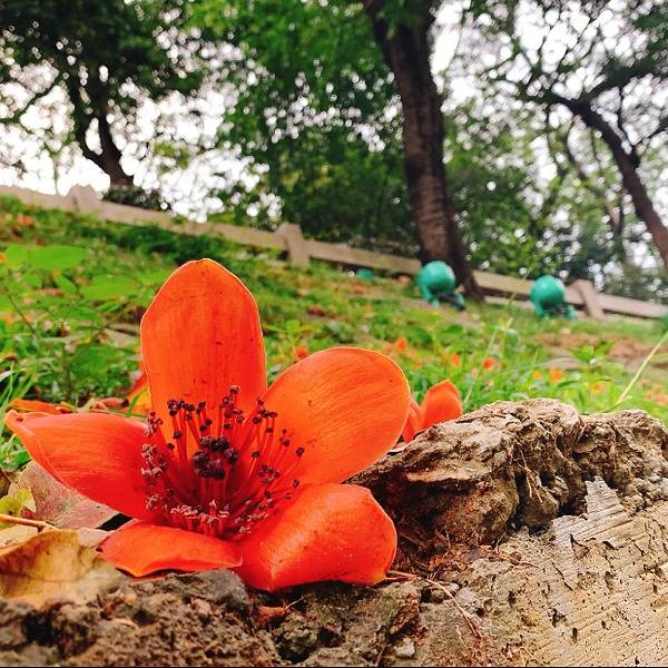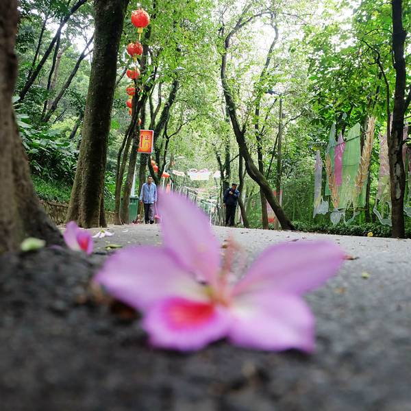 进门后,虽然还有灯会的装饰,仍感觉冷清。慢慢上山才感觉这里【植被】覆盖率太高了:各种参天大树,雨后初晴,空气清新,真是城市氧吧。图中有个落地的绿豆豆,踩起来会响,我们还玩了好一会儿。