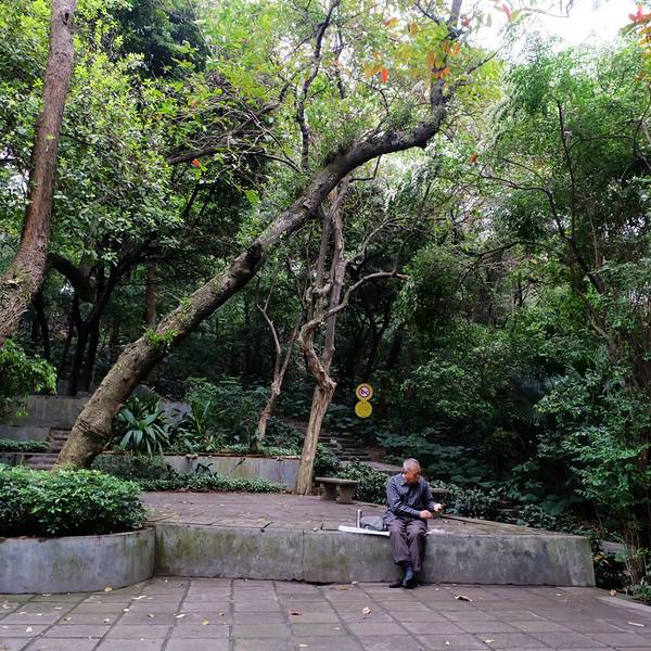 在半山休息时,很多老年人在这里听曲唱戏,很是清闲惬意。很多【城市文化】从老公园体现,至今我觉得有必要去的一是成都人民公园,另一个就是广州越秀公园。正因为人少、安静,越秀公园给我感觉是避世之地,比起高压的广州市区,这里就是个思考人生和自己谈话的地方。绕这么大的公园走一圈,部分烦恼也就清干净了。除了绿化好,这里还经常办画展、艺术家交流。赏赏花,看看画展,不一定要去多远,人也很容易静下来。