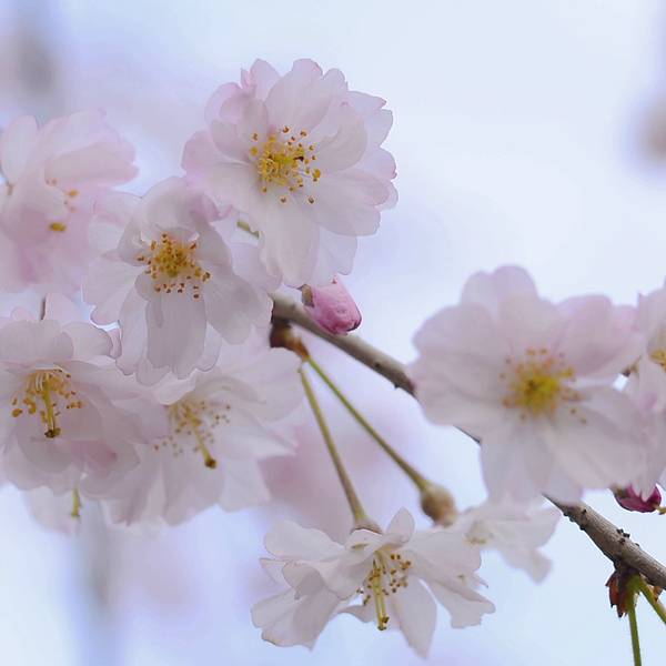 樱园的天空是开满鲜花的!较之武大的樱花,这里的特别之处在于她的规模盛大,她的势不可挡!樱园的樱花是扑面而来的,没有任何铺垫,在进入大门的那一瞬间,她就用汹涌而来的美将你包围!在茂密的樱花林中行走,就会真真切切的感受到一个花开成海的春天!无论你何时不经意的抬头,都会发现,天空被樱花编织成了花网,网住的是你,爱美的心。在这里自拍,是可以随时假装在京都的这粉嫩的颜色,除了少女的脸庞,你还能想到什么?不同于以上图片中的东京樱,垂枝樱的花瓣几近透明,很像我们小时候用来折纸花的玻璃纸,少了几分少女的娇羞,多了几分冰清玉洁的矜持樱园的美,语言和文字无法尽述,只有用眼睛去观察,用心去体会,才能真正感受到樱园之大美!