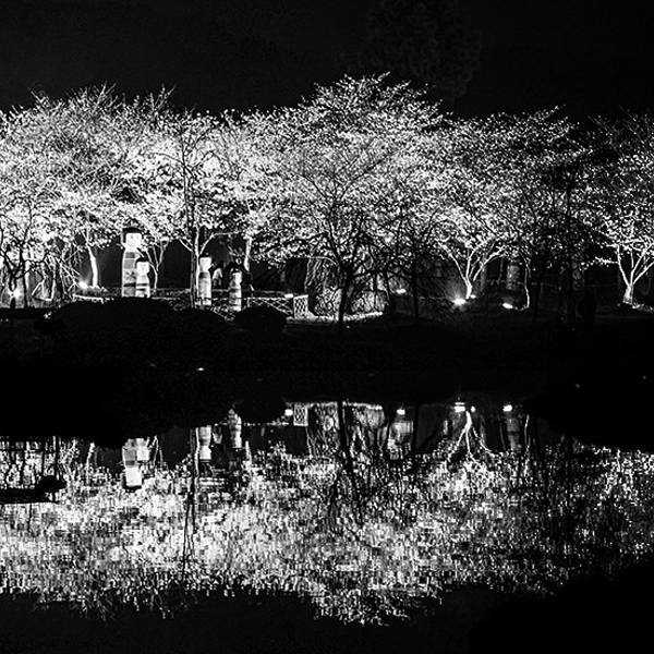 正好我们带了夜景灯,拍夜樱,直到了园区快要关门了才离开,坐上了末班车回市区。