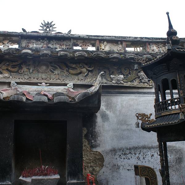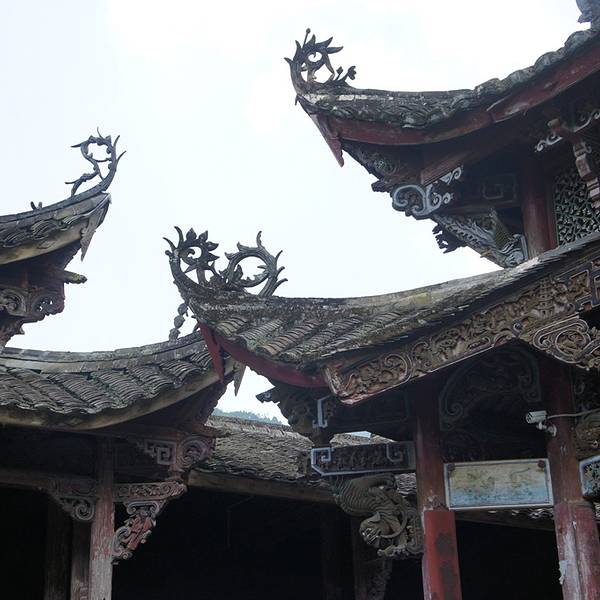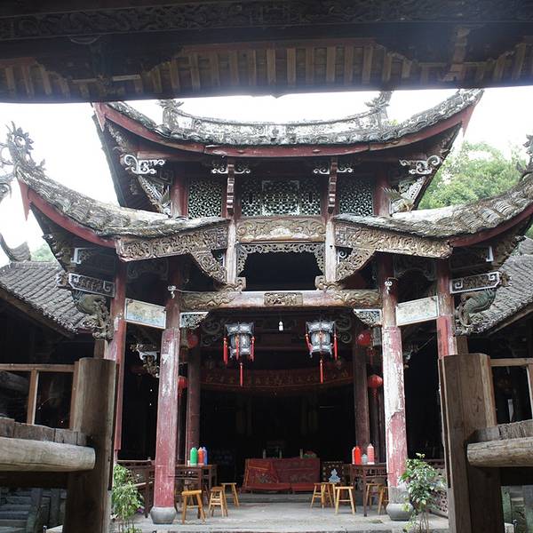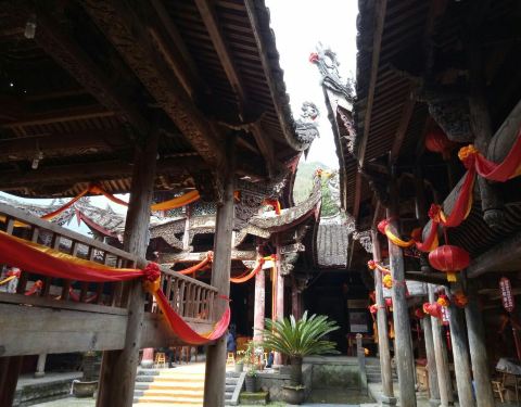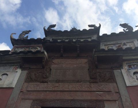 在兰溪桥附近,是当地的财神庙,听本地人介绍,好像是供奉香菇始祖吴三公的。全殿木质结构,雕工细致,因为年代久远因此老化比较厉害,正殿对面还有一个古戏台。