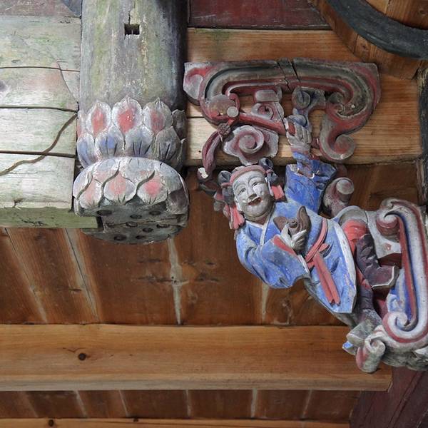 全殿木质结构,雕工细致,因为年代久远因此老化比较厉害,正殿对面还有一个古戏台