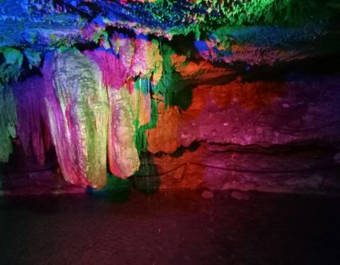 洞中景色不错。出洞后的景色也很棒。唯一需要吐槽的是入洞不久就看到烧香拜佛地,有点乌烟瘴气洞中景色不错。大自然的鬼斧神工令人称奇。其中洞肚位置有个很大的空间,被施工成了龙宫,倒颇有一些味道,龙宫附近有一个洞内的瀑布,水声很大。洞内总长记不清了,挺长的,也有高度差。我是从山脚下入口进洞的...洞中景色不错。大自然的鬼斧神工令人称奇。其中洞肚位置有个很大的空间,被施工成了龙宫,倒颇有一些味道,龙宫附近有一个洞内的瀑布,水声很大。洞内总长记不清了,挺长的,也有高度差。我是从山脚下入口进洞的,相当于一路爬山爬到洞口。唯一需要吐槽的是入洞不久就看到烧香拜佛地,有点乌烟瘴气。出洞后一路下山的路很长,花了五块钱坐了村里人的面包车走了一截。带娃娃的不大建议进去。洞内很凉,小孩上下也不方便。出洞后的景色也很棒。洞内光线暗,基本上没法拍照的。 展开