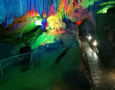 夏天去的!去的时候有缆车上去的,缆车比较简陋,坐了应该二十分钟(没看时间,估摸着)如果是夏天特别晒,要戴帽子和墨镜,穿防晒衣!到四分之一时,有人会拍照,摆好表情!下缆车后,还要走好像两公里路才能到山洞入口!洞里特别凉快,挺长,钟乳石造型比较多!