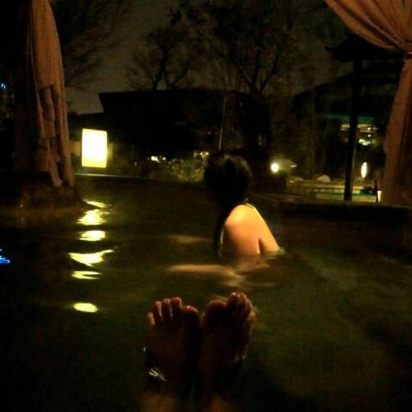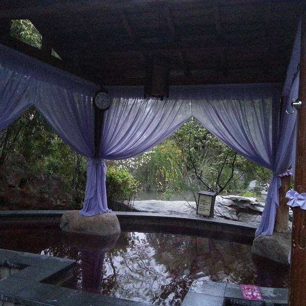 室外的泡池,有几十个池子,很园林的风格,泡在里面边泡汤边欣赏风景真是不错。根据汤包不同各个池子有不同疗效。平时只开一半的池子,周末全开。平时去服务很到位,周末的话服务就要打折了,可能因为人太多了,有时候水温会不够,大部分时候浴巾湿了也不能换干的,会很冷,所以如果时间允许,还是选择非节假日前往吧。