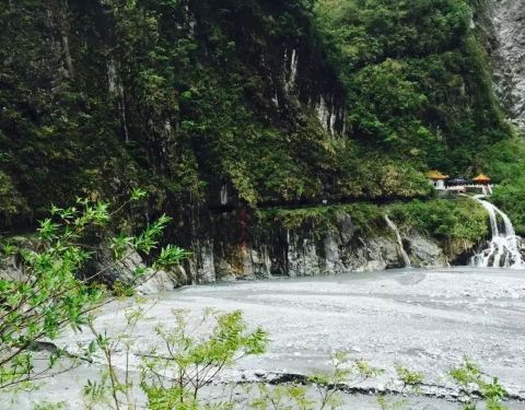 在太鲁阁公园一个很特别的祠,在山上,旁边有瀑布,景色特别美丽在太鲁阁公园一个很特别的祠,在山上,旁边有瀑布,景色特别美丽。游客一般被安排在祠下面的观景台欣赏,因为祠下有湍急的喝酒,碎石很多,不方便走进去。