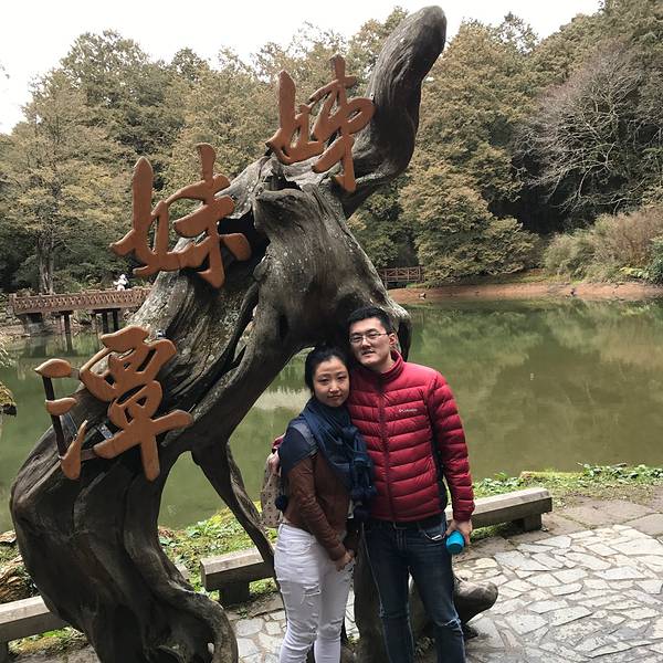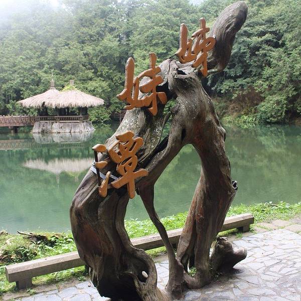 姊妹潭哪位真人在此修行🙏🏻后面的神木名为心心相印💕(角度问题照的可能不太像☺️)