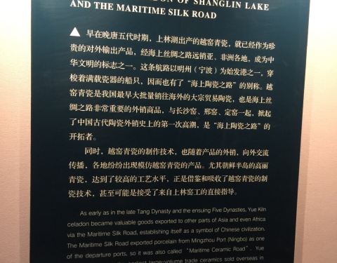 上林湖越窑遗址驰名中外,从东汉末年开始烧制青瓷直至北宋年间,这一千多年中烧制出的青瓷作为御窑上供朝廷,其中的秘色瓷更因在唐朝年间供奉于法门寺,并保管在地宫,被涂上皇家色彩。余秋雨在《文化苦旅》中也曾提到这个地方。