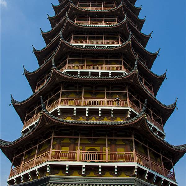 登上塔顶,举目远眺,苏州古城尽收眼底园林出口一路向西,便来到孝子孙权为母亲而建的报恩寺塔(北寺塔)