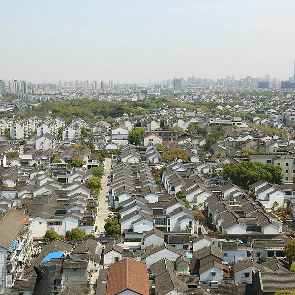 登上塔顶,举目远眺,苏州古城尽收眼底