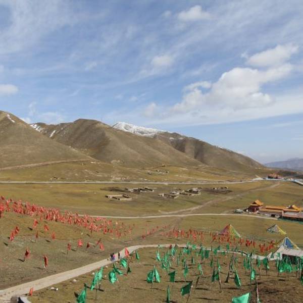 因文成公主进藏在此“摔镜”闻名,有日亭、月亭等标志建筑。