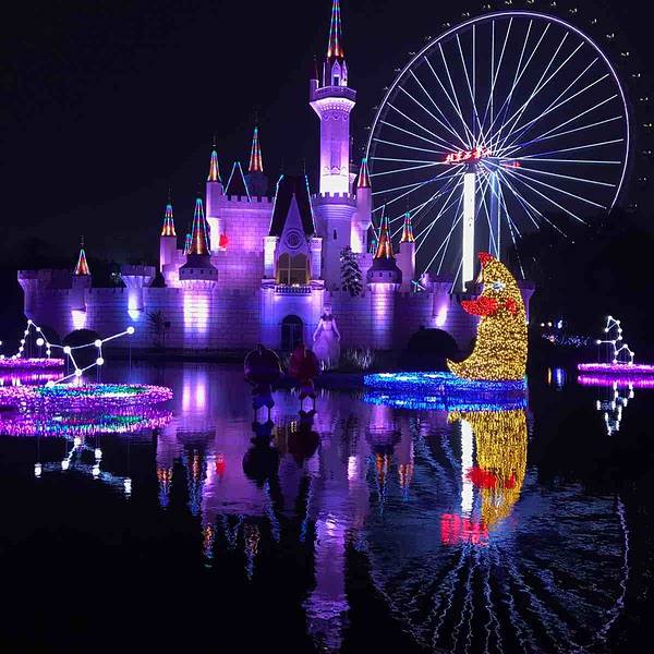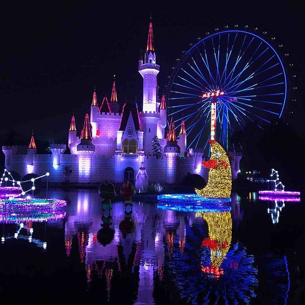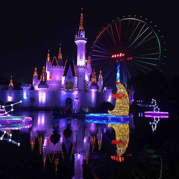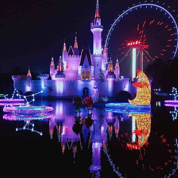 🎉 夜幕降临,游乐园的烟花秀将为你点亮星空。璀璨的烟火在空中绽放,如同童年梦想般绚烂多彩。🎆