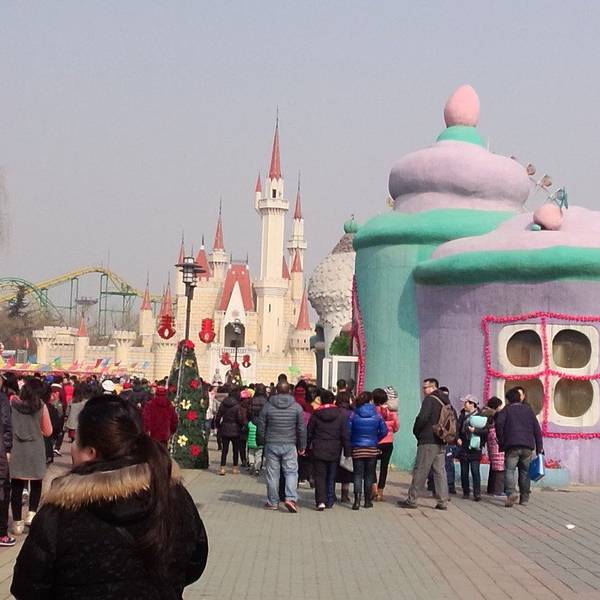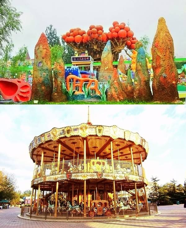 (望天,大概是被戳中了少女心吧)就是不知道为什么有一种小时候去的游乐园就应该长这样的感觉是一个很大的桥的顶部,这个桥连接了两个区,如果我说我觉得有城堡的那边才是真正的游乐园希望大家都不要在进园的那边花钱是不是不太好大概就像这样,比图片上看上去还要再高一点听说是全北京唯一的双层旋转木马(根本没有照出双层的感觉),但我们去的时候人很少所以就只能在一层玩