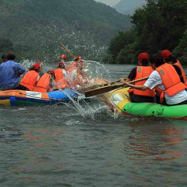 秋浦第一漂在秋浦河上,我们自驾过去的,从合肥出发,车程大约三个小时。因为李白曾在这里写下诗句赞美景色,所以一直很神往。周末准备好了换洗衣服和水鞋,自驾过去游玩,还是觉得蛮好的。河全长约十五公里,还有好几处险滩,漂流起来有时比较平静,可以欣赏两岸的杨柳和丛林风景,有时很凶险很刺激,还是很好玩的。衣服被打湿了,很凉快。玩完漂流,我们又自己烧烤,还可以射箭等活动。一个周末在那边玩的觉得还不错。