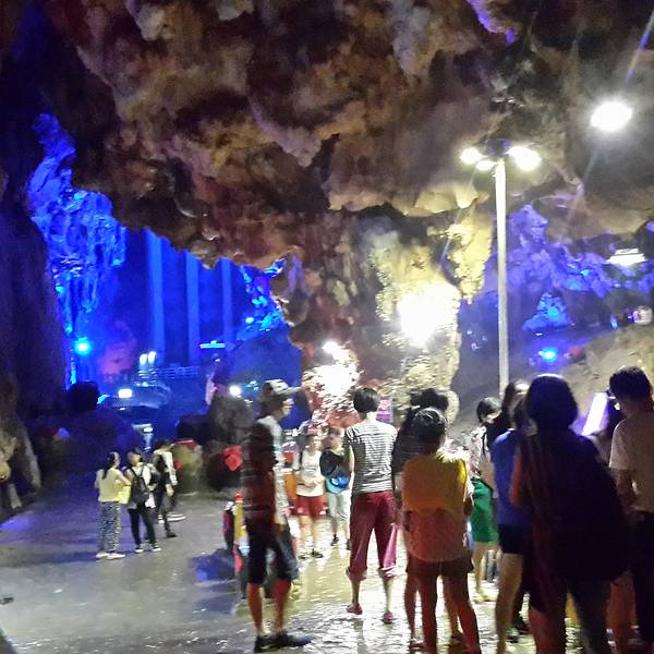 乘坐小火车、观光电梯,走浮桥,游览巨型地下河溶洞景观。