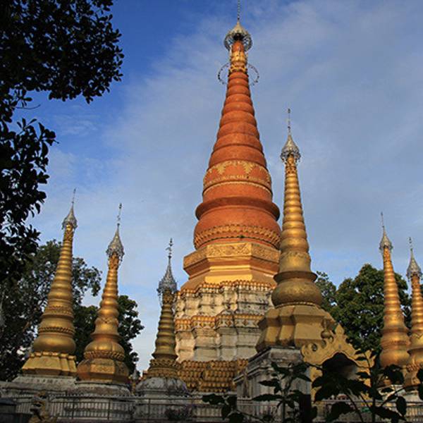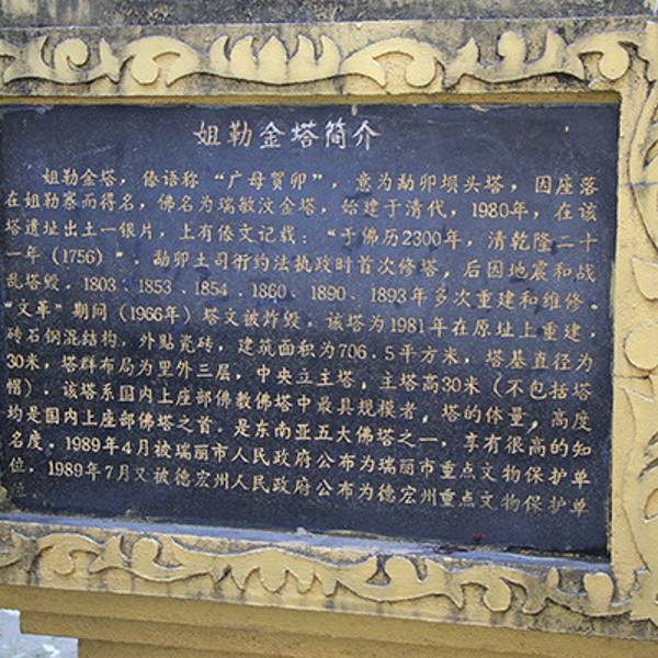 有一座金碧辉煌的佛塔,极目远眺,塔顶巍峨耸立,直插云霄,它就是姐勒金塔,据传此塔是在2500年...距瑞丽县城5公里的姐勒乡小山上,有一座金碧辉煌的佛塔,极目远眺,塔顶巍峨耸立,直插云霄,它就是姐勒金塔,据传此塔是在2500年前,是瑞丽最古老的佛教建筑。相传,很久以前,在金塔地基处,每当月明星稀之夜,...距瑞丽县城5公里的姐勒乡小山上,有一座金碧辉煌的佛塔,极目远眺,塔顶巍峨耸立,直插云霄,它就是姐勒金塔,据传此塔是在2500年前,是瑞丽最古老的佛教建筑。相传,很久以前,在金塔地基处,每当月明星稀之夜,其地就发出闪闪光芒,五光十色,极为奇丽,令世人大为惊奇。 展开