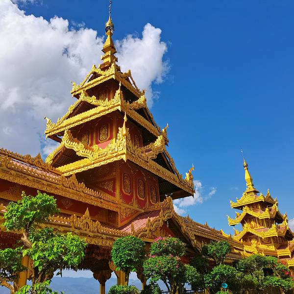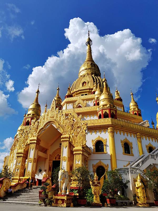 姐勒大金塔非常雄伟壮观,由一个高塔数个小塔组成,瑞丽蓝天白云倒影下非常震撼门票只需要5元就可以...姐勒大金塔非常雄伟壮观,由一个高塔数个小塔组成,瑞丽蓝天白云倒影下非常震撼门票只需要5元就可以来体验下,能够拍出大片的感觉。