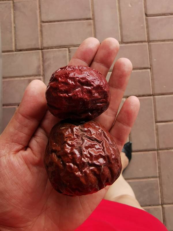 酒店附近有个农贸市场,我们三个去逛一圈,目的是为了给爷俩儿买个帽子,否则会被晒化。最后买了帽子又捎带脚的买了大枣,葡萄,一包蜜瓜,杏等水果,一个大个的馕。