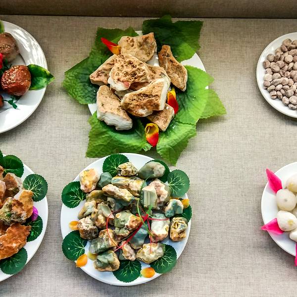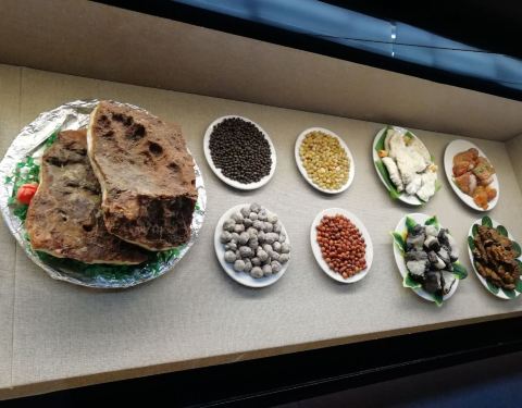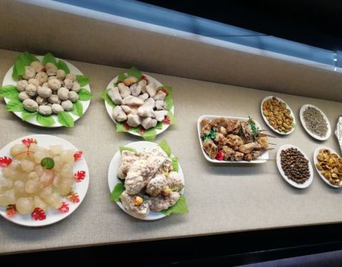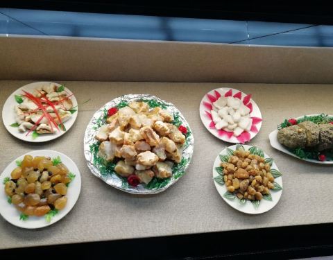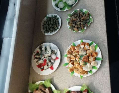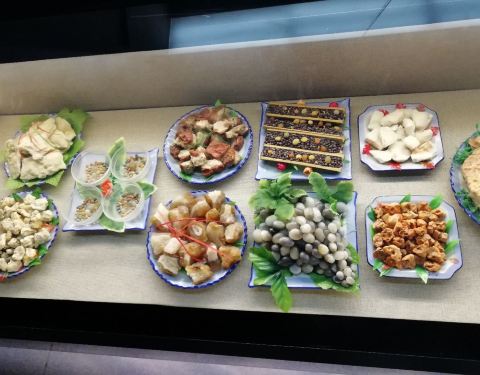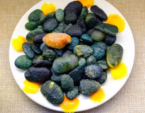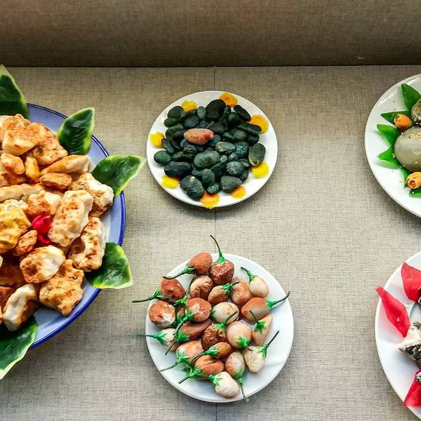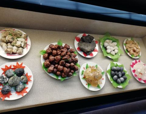 第二种就是干尸,新疆地理条件特殊,出产了很多古代干尸,具体形成原因和干尸的真正面貌我就不在这里说了,省得吓到各位都不敢往下看了,若是感兴趣的朋友可以去看看,那位著名的楼兰美女就在哈密博物馆呢。第三种就是用石头摆起来的满汉全席!没有错,你看到的这些长得像一盘一盘大餐的东西,都是石头,各种各样的石头,原来知道新疆是产玉石的地方,不过这么多种玉石组成的满汉全席真的是第一次见到,大开眼界了。看着这些瓜子花生还有糍粑,我都想拿起来咬一口了,真是感叹大自然的神奇,在新疆这边你会碰到许多卖石头的,休息站、路边、旅馆到处都是,我想喜欢收集奇石的朋友应该会很喜欢这里。特别是这条鱼,看起来就像是先炸再红烧的红烧鱼,看的我直流口水。 展开