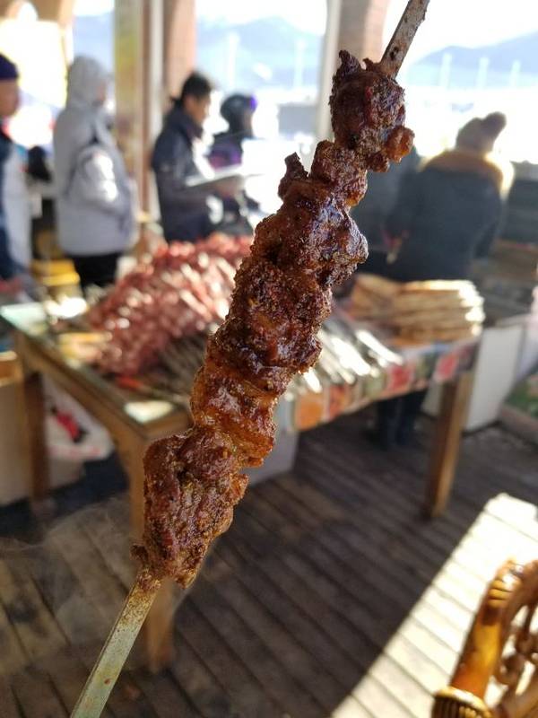 羊肉串,这个羊肉串真的太好吃,比在乌市里餐厅里吃到的都要好吃,10米一串,跟外面餐厅价格一样,但肉更多,很难理解在景区里能这么良心,毕竟雪场里所有的滑雪者,饿了都只能在这里几个摊头上选择,羊肉串好像就独此一家