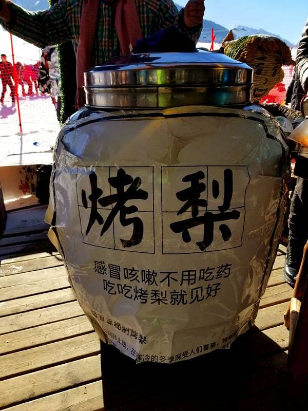 烤梨,10米,原来烤梨不是烘山芋同款就是雪梨红枣银耳羹呀……为啥叫烤梨还是不懂,在雪天雪地里喝一杯热的又是甜的,然后哈几口热气在空气里冒烟,开心