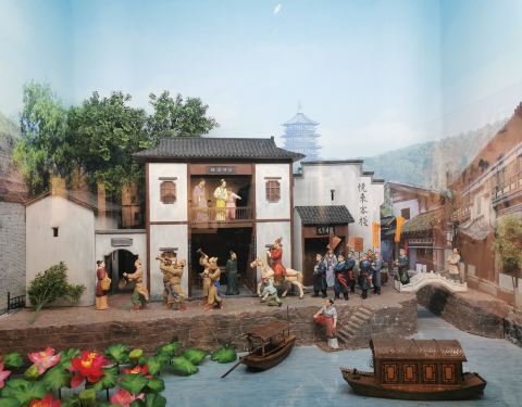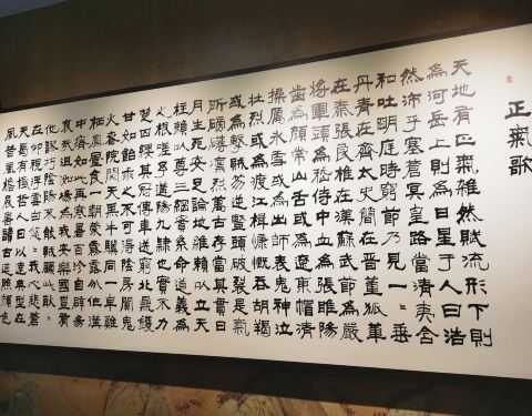 “人生自古谁无死?留取丹心照汗青。”文天祥是我们十分敬仰的北宋大臣、文学家和抗元英雄,他的浩然正气万古长存。清明节前有机会参观他的纪念馆深感容幸。这里是免费参观,里面景色优美精致,进门一眼看到一座石拱桥。然后是文天祥高大伟岸的汉白玉塑像,上了石梯,有个小广场,前有石刻文天祥的《正气歌》,还有乐谱,然后是文天祥纪念馆大厅,厅内供有文天祥的铜像。厅后有个花草葱茂的院子。左右两边分别是展厅,大多以图片形式介绍文天祥的经历和事迹。正后方是一长长的照壁,上绘有长幅青花瓷似的画,远看以为是将《清明上河图》印在青花瓷上,近看才知是《庐陵古韵》图。照壁两旁的长廊悬在山边,用高高廊柱撑着,也很有特色。