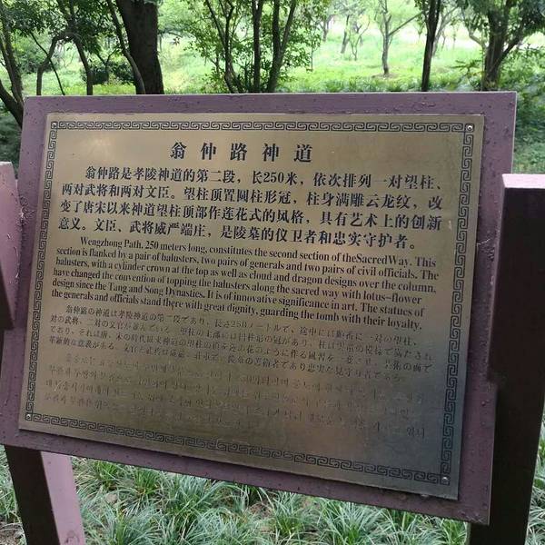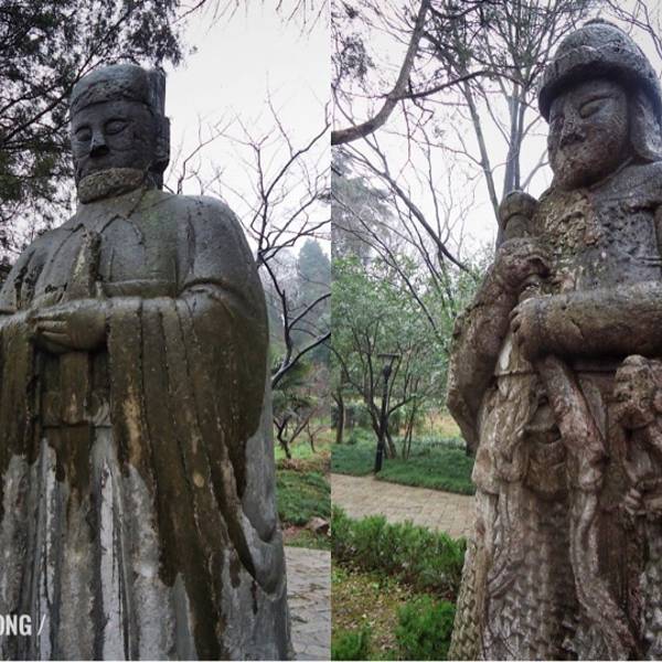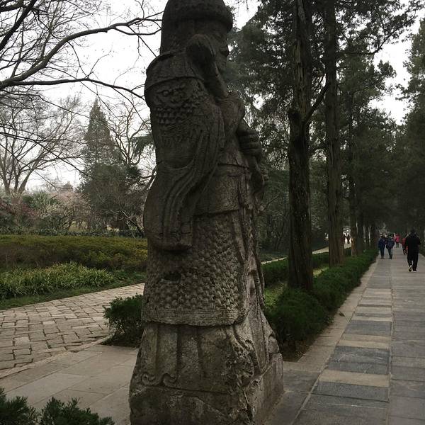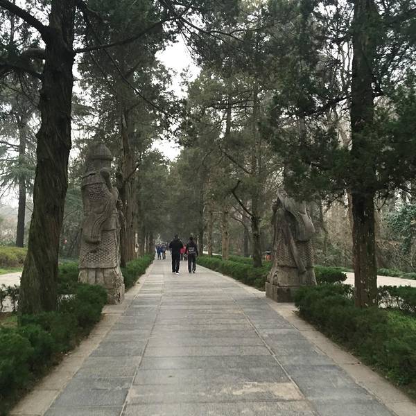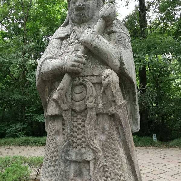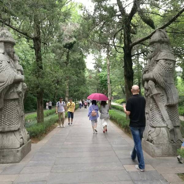 我是2018年5月19日周六下午去的,游人不是很多,从这个入口进去,先买票70元一张,进到陵园里后,第一个看到的就是神道的起点——望柱从这里开启神道漫游之旅。不过我很奇怪好多人说的什么石制骆驼、石制大象、狮子、獬豸、麒麟都没有看到,只有文武两对大臣的石像,感觉很奇怪啊,都弄到那里去了。这个是文臣雕塑很高大,超过2.5米了,身穿朝服,双手持象牙圭板,武将非常威武身披重铠,佩戴宝剑,双手持铜锤,守卫这神道,着对神像,被称为翁仲。神道长约600多米,两旁树木葱绿茂盛,神道的终点就是一个石桥,号称金水桥,就是90度拐角那里,立着明孝陵的石碑再往前走就是棂星门了,明孝陵的陵区进入的始点明孝陵的神道石像在全国也是“翘楚”,规模很难有帝王超越的,明孝陵神道的90度拐角,也显示朱元璋大帝的胸怀,和少有的包容性。 展开