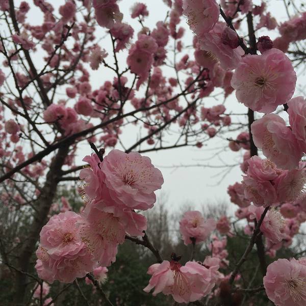 进入梅花山可以看到到处都是粉嫩的颜色,连广告宣传画也是应景的粉色系列,让人爆发了满满的少女心。2月到3月是梅花节,来赏梅的人特别多。不过梅花因为种类很多,而且每一种开的时节有差,有些已经开过了,有些正在开,而有些含苞待放,没有想象中那种繁茂的景象,不过也是美的。每种梅树旁边都会有一个牌子,上面介绍了梅花的种类和特点,有宫粉梅、朱砂梅以及各种梅,可以让不懂花的游客比如我获得更好的观赏体验,而不仅仅是傻傻的拿着手机不停拍照。梅花山除了梅花还有别的树种,而且种植的很有特点,通过不同高度和直径的树种营造出层峦叠嶂的层次感,既有低矮的球形绿植,也有高大的玉兰树,不会显得单调。游玩途中发觉了一株梅后,长相不同于周围的梅花,很低调,树干粗壮但花开的并不是繁茂,但是气势却不输给周围那些“花枝招展”的小细腰梅树们。既然有梅后,那一定有梅王对不对,带着这个疑问继续游荡在梅花的海洋中,没想到真的让我遇到了,果然有梅王,就在梅花山的山顶赫然屹立着一株和梅后一样雄壮的梅王。不过找梅王合照的人实在太多了,没办法拍到梅王的全貌。梅花山还有一个梅花艺术中心,这里有梅花山的发展史介绍以及各种梅花的盆栽展览,姿态各异,各领风骚。春天来了,梅花山的梅花值得一看,找个天气晴朗的周末约上三五好友一起徜徉在花海中吧。 展开