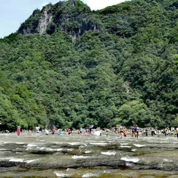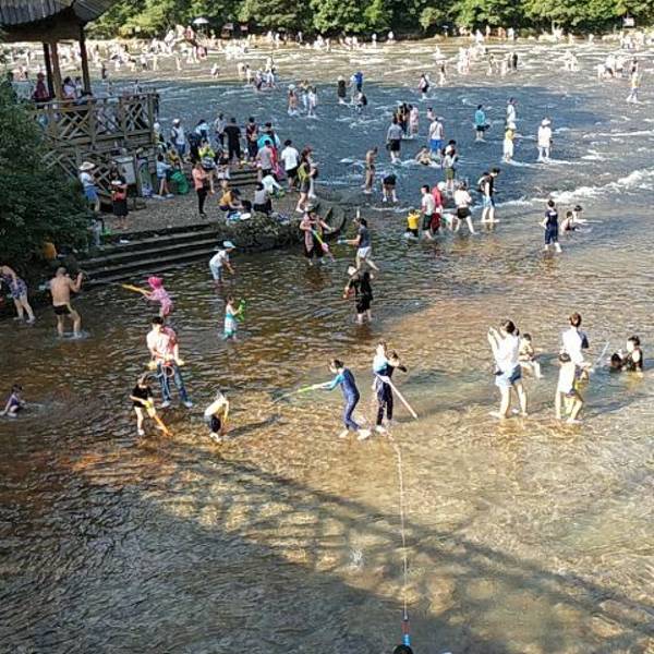 夏日炎炎,正是游玩白水洋的最佳时节。此时的景区热闹非凡,人们纷纷换上泳衣,迫不及待地踏入清澈见底的溪水中。溪水恰好没过脚踝,带来丝丝凉意,瞬间驱散了夏日的燥热。在这里,你可以尽情享受打水仗的乐趣,与亲朋好友来一场欢乐的水战,感受水花飞溅的刺激与清凉;也可以体验水上拔河、水上竞走等趣味十足的水上运动项目,在欢声笑语中释放活力。而那近百米长的天然冲浪滑道,更是勇敢者的乐园。仰卧在光滑的石面上,顺着湍急的水流飞驰而下,头顶是湛蓝如宝石般的天空,两侧青山如骏马奔腾般飞速掠过,惊险刺激却又不伤肌肤,让人仿佛置身于一场奇妙的冒险之旅,尽情享受大自然赋予的独特体验,每一次滑行都伴随着尖叫与欢笑,令人欲罢不能。