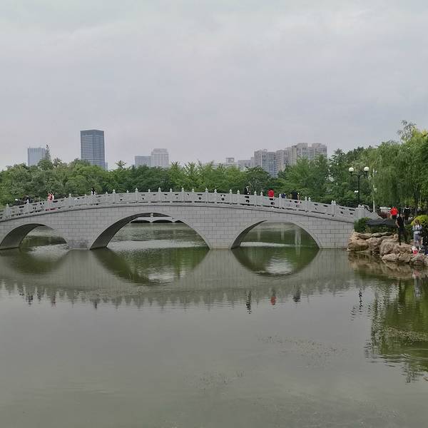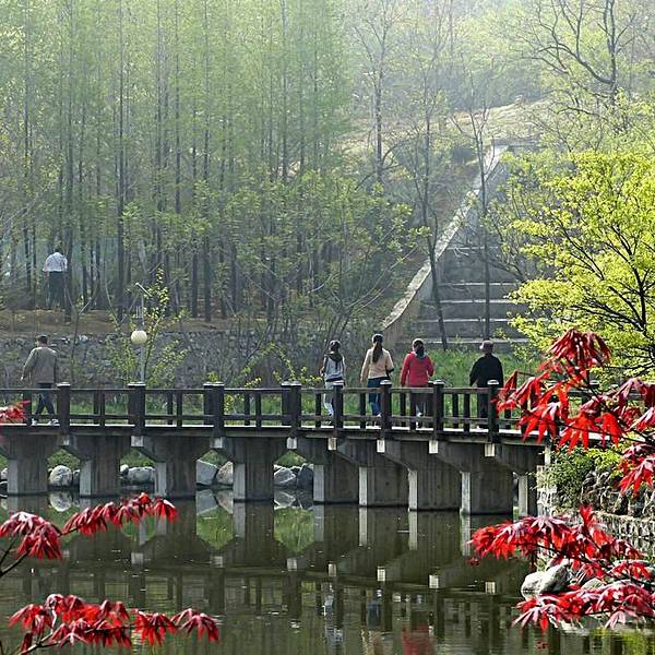 公园占地32.4公顷,以园林科研为依托的该园植被丰富,温带夏绿阔叶林地带北部的落叶栎林亚地带的代表树种都能在此寻得踪影。园内四季被各色植物覆盖,春季迎春花和丁香花香飘满园,夏季槐花领衔的百花怒放园中,秋季满园都是由嫩黄银杏和鲜红枫叶交织的色调,冬季各类松柏依然翠绿傲立园中。园东部有潭池水,面积达7000多平方米名曰:“映松池”,俗称“南大湾”。池水是小童的乐园,或池边戏水,或近观蝌蚪,或投石较力;池水是老年人垂钓的场所,甩杆垂钓稳坐池边怡人心性;池边堤岸留下最多的是恋人的足迹,暮色降至,携情人之手漫步堤岸,品杨柳岸晓风残月。公园南部立有鲁迅纪念碑,松柏肃立左右,不妨静立先人碑前,闭目冥思,感受横眉冷对千夫指之气概,品味俯首甘为孺子牛之谦卑。