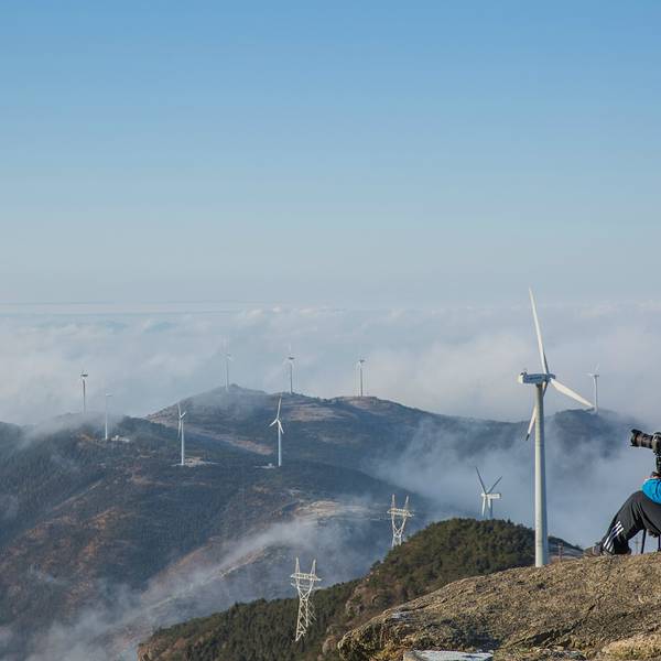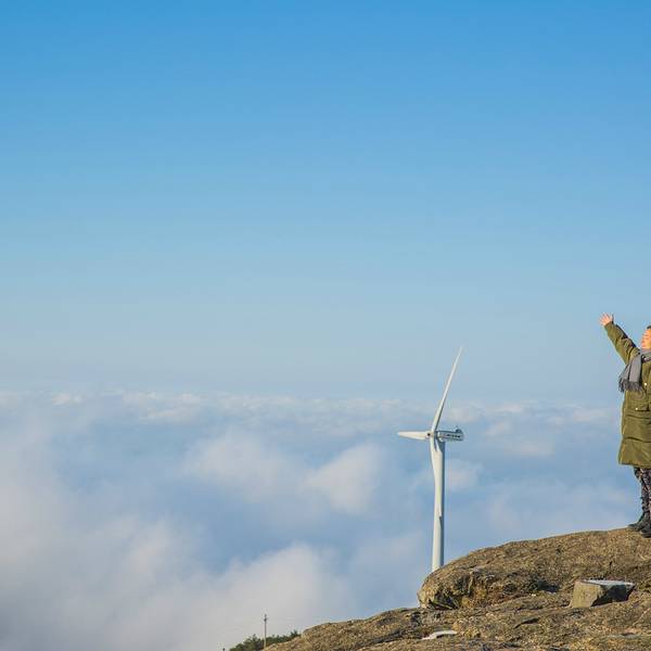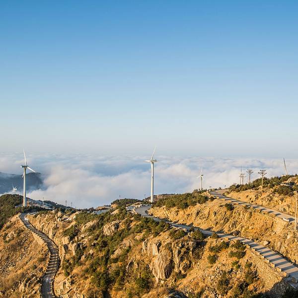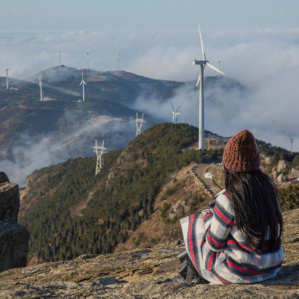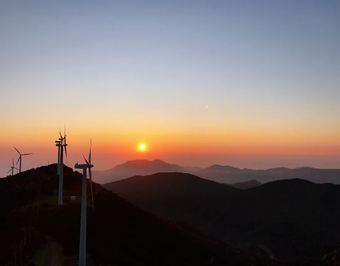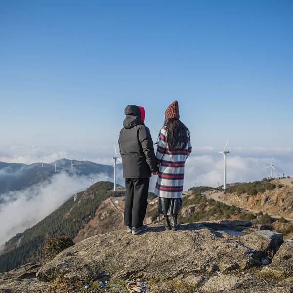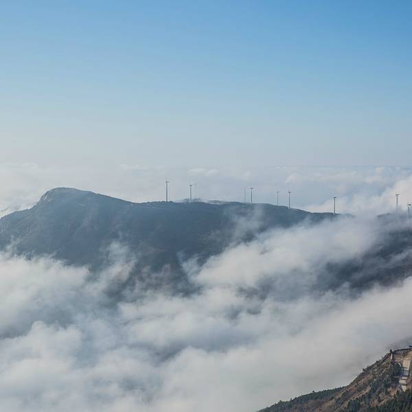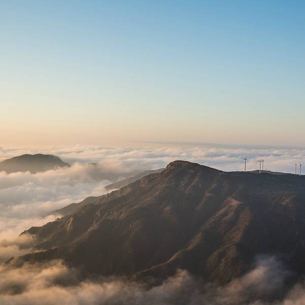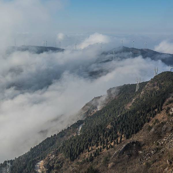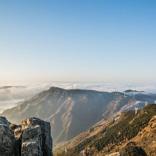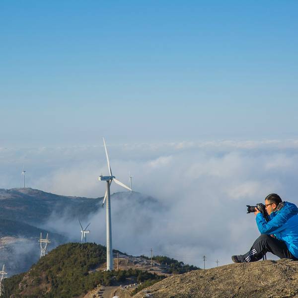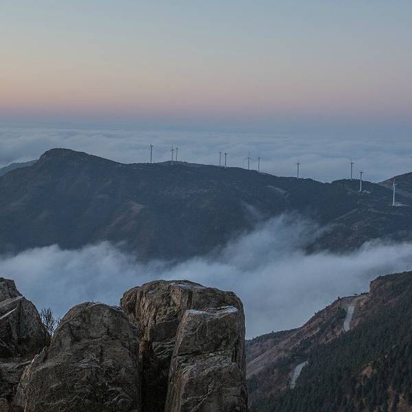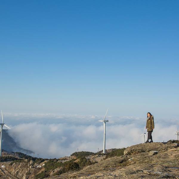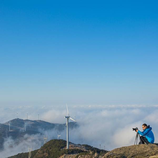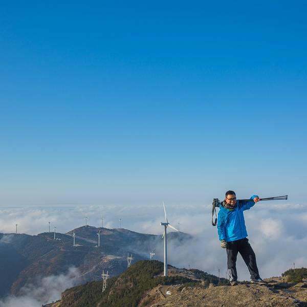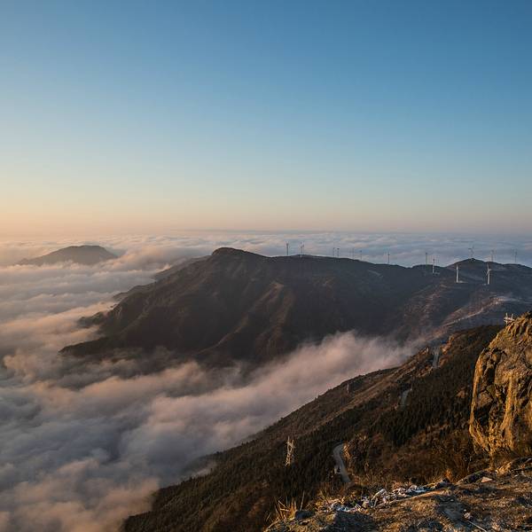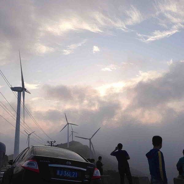 站在山顶,看远近山岭上的风车在云海间缓慢旋转,画面唯美。 在新世纪中国大陆第一缕曙光首照地看一次云海日出。