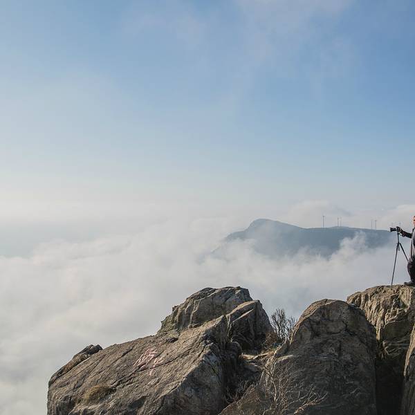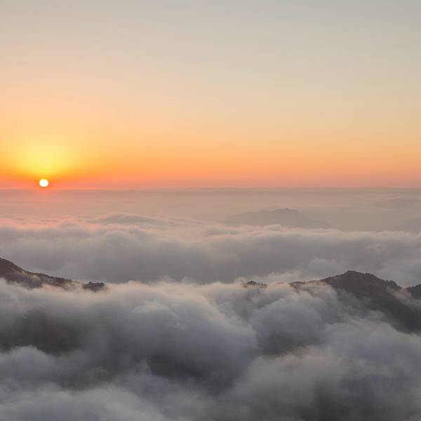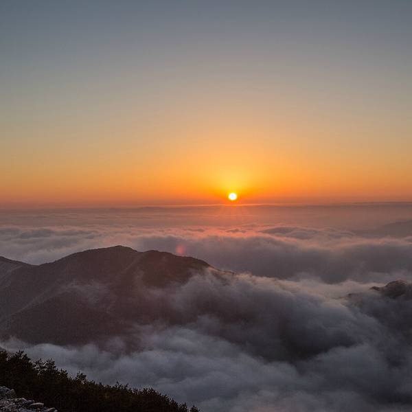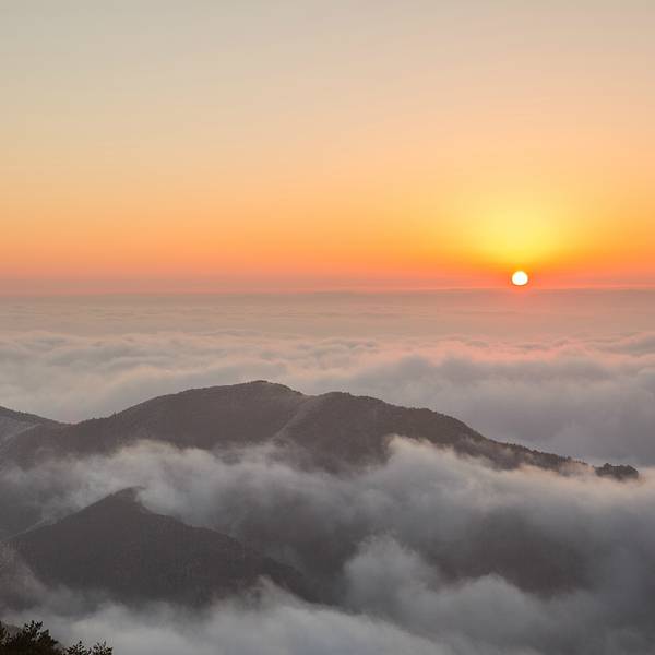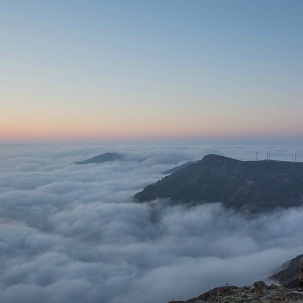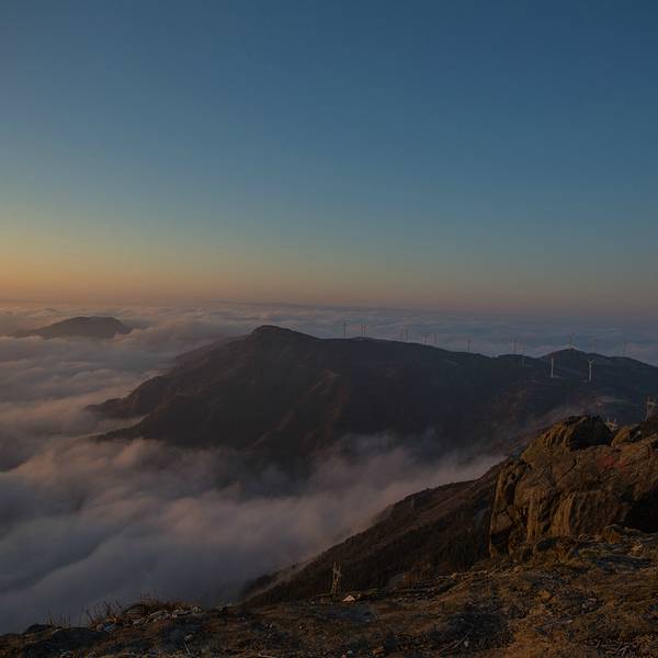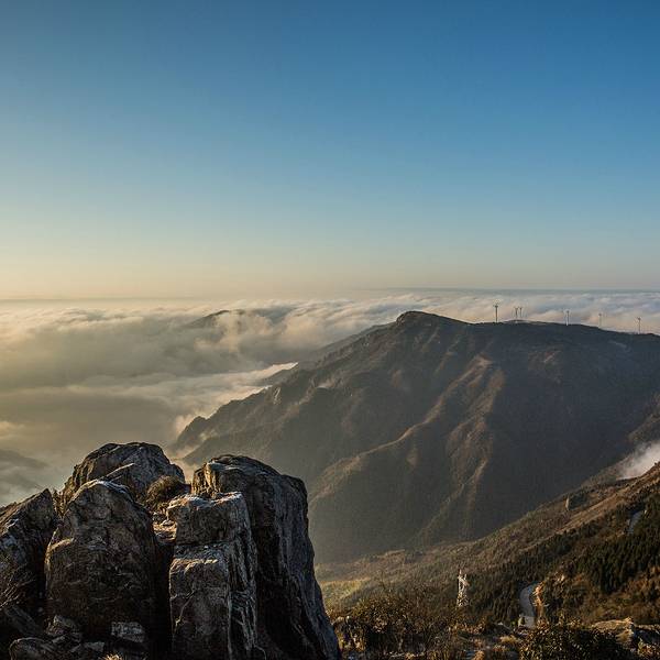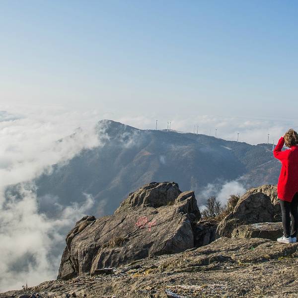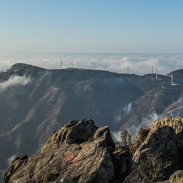 括苍山位于临海西南部,主峰米筛浪海拔1382米,是浙东南第一高峰。它没有天目山、雁荡山那么出名,是浙江难得还没怎么被旅游开发的地方。山上没有太多人工痕迹,云海、日出和风车的景色组合是每个来到括苍山的人都难以忘怀的景观。山顶的一块新世纪第一缕曙光纪念碑(曙光碑),标志它是21世纪中国大陆第一缕曙光首照地。可能也正因为没有旅游开发,上括苍山的路并不好走。而当你站在山顶,放眼望去是开阔而绵延的山岭,山岭上风力发电厂的风车日复一日地旋转着。常有大朵的云环绕在山间,日出时阳光把云海和天空染成渐变的橙色,让你觉得一路的辛苦都是值得的。在曙光碑看一次日出,也不失为一件颇有仪式感的事儿。