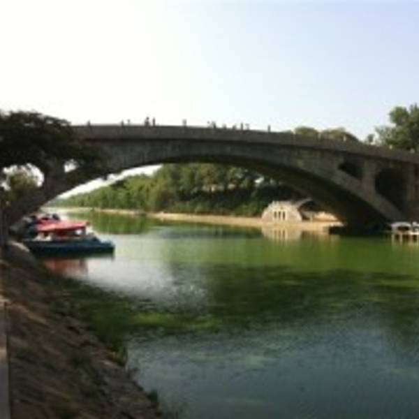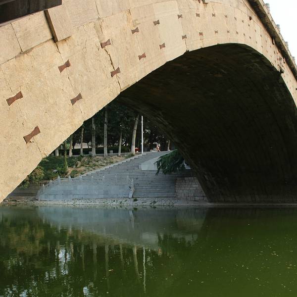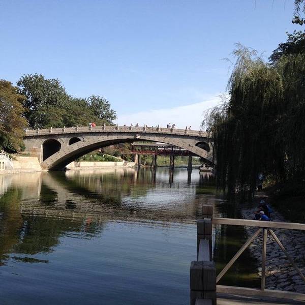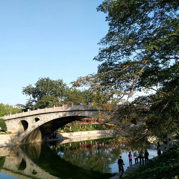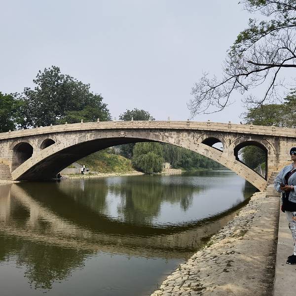 金骆驼 景区为了让游人更好地欣赏,在洨河两侧修了台阶、观景台,又在几十米外修建了一座廊桥。游览时间约一小时赵州桥也叫安济桥,当地称大石桥,建于隋朝年间公元595年——605年, 距今已有1400多年的历史,是当今世界上现存最早、保存最完整的古代单孔敞肩石拱桥。小时候语文课本有一课就是“赵州桥”,朗朗读了这么多年,...赵州桥也叫安济桥,当地称大石桥,建于隋朝年间公元595年——605年, 距今已有1400多年的历史,是当今世界上现存最早、保存最完整的古代单孔敞肩石拱桥。小时候语文课本有一课就是“赵州桥”,朗朗读了这么多年,还是应该前来欣赏以了却心愿。