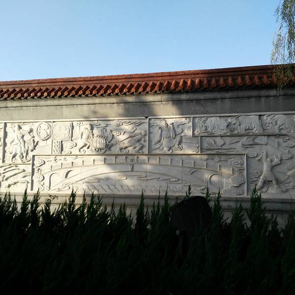 从停车场向里走过一个小桥就是赵州桥了,两边有很多买当地特产的,实话说比较贵,尤其雪梨汁,可以出来去超市买。现在赵州桥整个景区整修的算是不错了。进门影壁墙后面,两侧有八仙的雕塑,像个公园。再往里有李春的塑像和一些介绍。