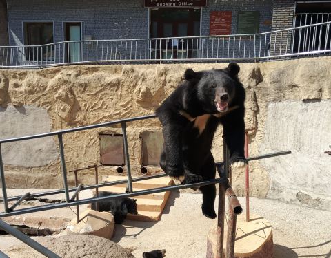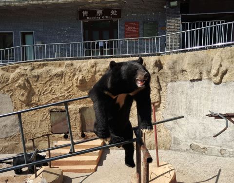 八达岭熊乐园是去往长城登楼坐滑车时,必经的一个算是景点的地方。可以看到好多个大大小小的黑熊,或躺或卧,摇摇摆摆,走来渡去,憨态可掬。